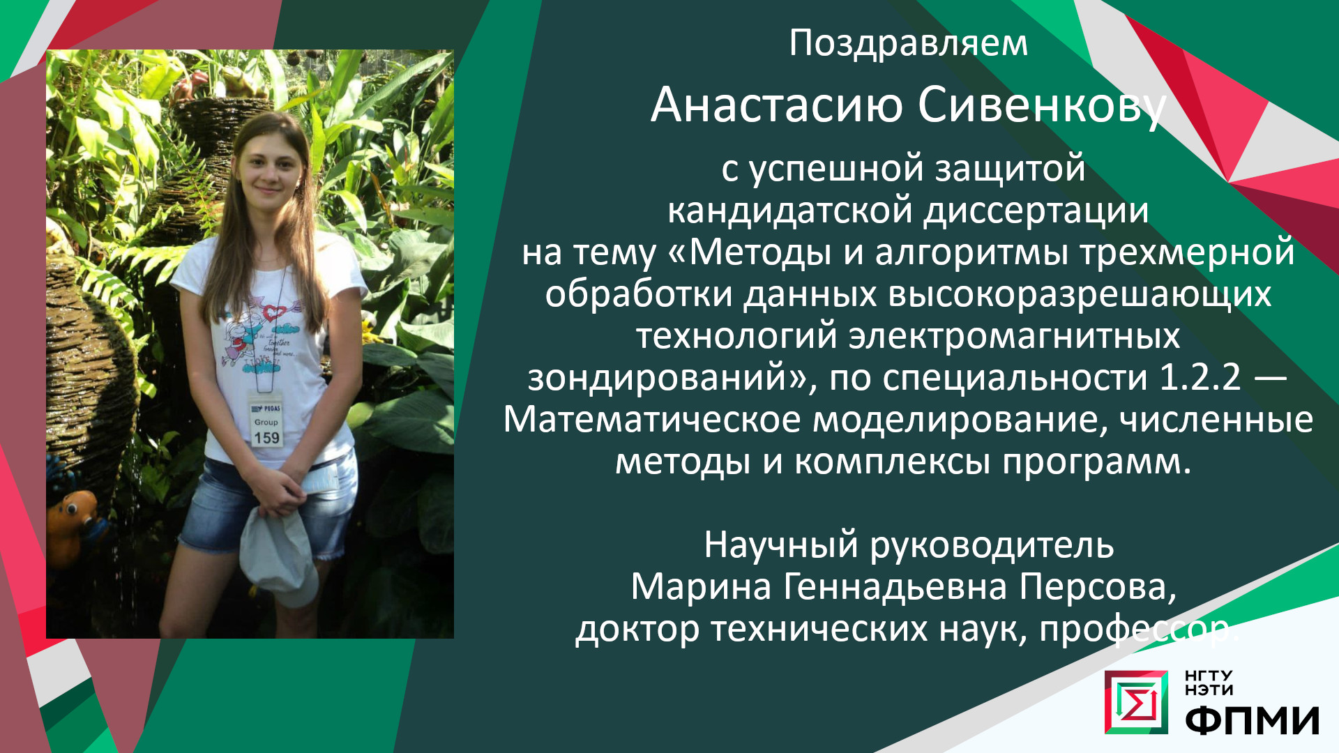Поздравляем Анастасию Сивенкову с успешной защитой кандидатской диссертации